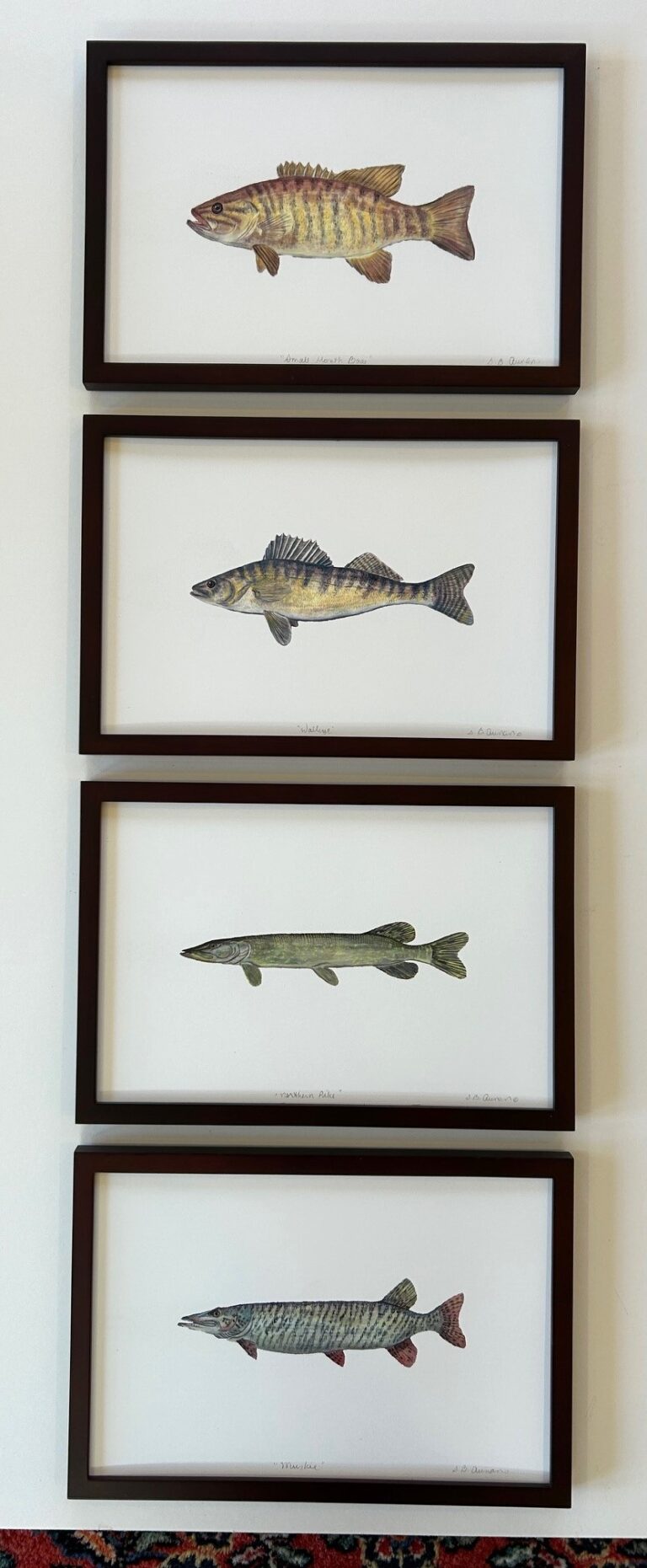 Each fish print is professionally reproduced with a white border (no mat needed), sealed in a clear poly sleeve, titled and hand-signed in pencil by Suzanne, and sized to fit standard frames. Please identify your fish print from the choices below when you place your order: